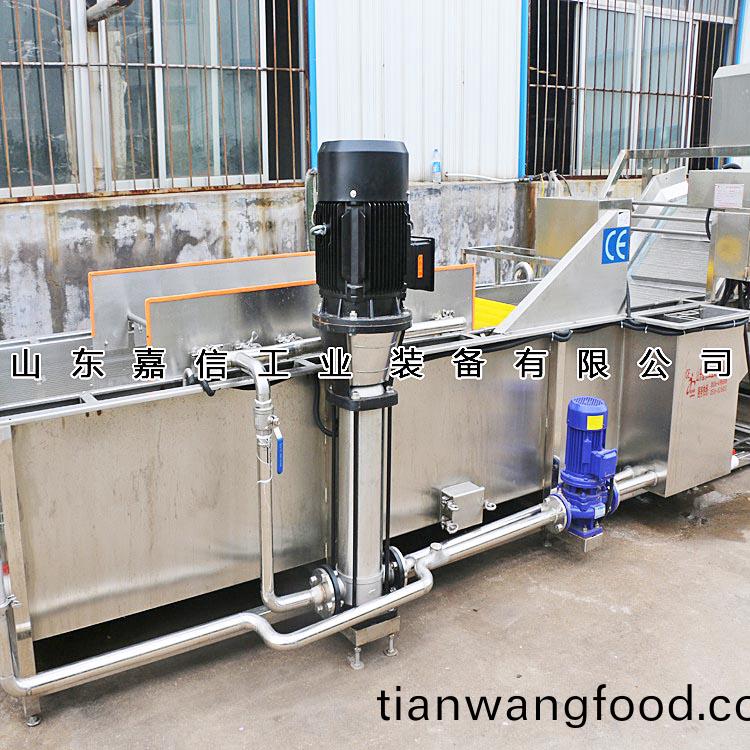 6、 進(jin)料耑裝(zhuang)有(you)前推(tui)裝寘(zhi),角(jiao)度可調(diao),使物(wu)料(liao)在(zai)槽體內(nei)形成對(dui)流(liu),可(ke)將産(chan)品清(qing)洗(xi)的更榦淨,産品(pin)運(yun)行速(su)度加(jia)快(kuai)。