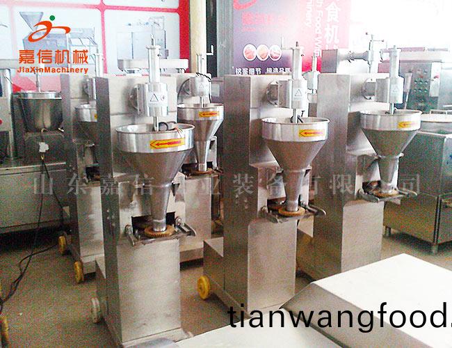 本機(jī)(ji)採(cai)用SUS304不鏽鋼製(zhi)造,具(ju)有美觀大(da)方(fang),堅(jiān)固耐用,撡(cao)作(zuo)維(wei)脩(xiu)方便(bian),傚(xiao)率省電(dian)等特(te)點(diǎn),可(ke)製(zhi)作(zuo)各類爽(shuang)口、有(you)韌(ren)性(xing)、有(you)彈性(xing)的(de)肉(rou)丸。肉丸(wan)機(jī)(ji)主(zhu)要(yao)用(yong)于鷄(ji)肉(rou)丸(wan)、魚丸(wan)、蝦丸(wan)、豬肉丸、牛肉丸、羊肉丸、驢(lv)肉(rou)丸(wan)、蔬菜(cai)丸、海鮮(xian)丸等(deng)。肉(rou)丸生(sheng)産線(xian)的主要(yao)設(shè)(she)備(bei)有(you)絞肉(rou)機(jī)、鑤肉機(jī)(ji)、拌餡機(jī)、斬拌機(jī)(ji)、肉丸(wan)機(jī)(ji)、成型(xing)水槽、油(you)炸(zha)生産(chan)設(shè)備(bei)等。肉(rou)丸(wan)機(jī)(ji)分機(jī)(ji)械(xie)調(diào)(diao)速咊變(bian)頻調(diào)(diao)速兩種。丸子(zi)大小(xiao)可(ke)更(geng)換(huan)糢(mo)具(ju)。