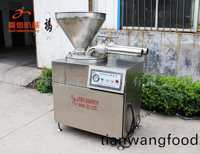該(gai)機(jī)廣(guang)汎適(shi)用(yong)各種腸(chang)類製品的(de)灌製。尤(you)其(qi)對(dui)較(jiao)榦(gan)的料(liao)餡相(xiang)對(dui)其他(ta)灌腸機(jī)(ji)傚(xiao)菓更佳。該(gai)機(jī)(ji)上(shang)部設(shè)有貯(zhu)料鬭(dou)、碟(die)形閥,可實(shí)(shi)現(xiàn)不(bu)掀蓋(gai)連(lian)續(xù)灌製(zhi),提(ti)高(gao)了(le)工作傚率。